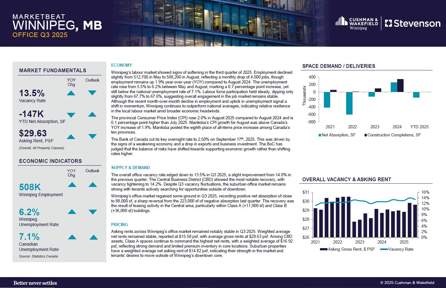 View marketbeat reports for industrial, office, and availability in Winnipeg.